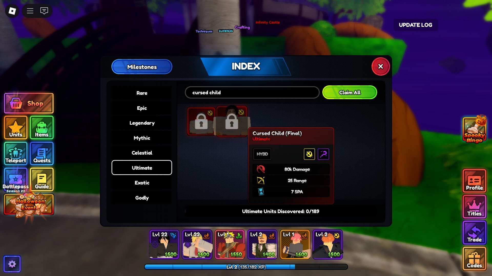 Cursed Child can be obtained at a 2% drop rate from the Destroyed Shinjuku Act 3 Legend Stages in Anime Last Stand.