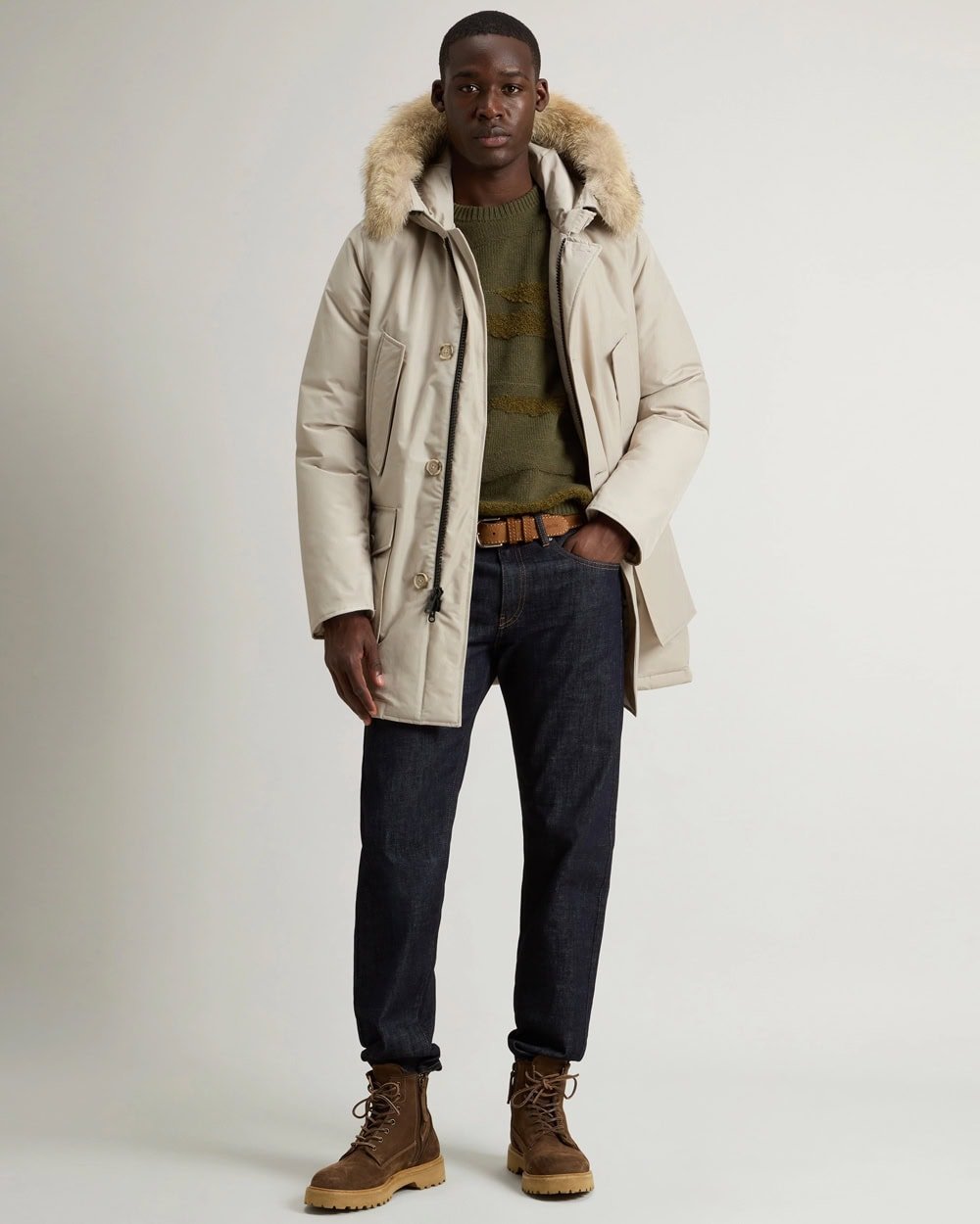 This is where a proper parka coat pays dividends with its robust build, insulation and timeless design. Spend the money on a classic from Woolrich or Nigel Cabourn and you’ll have it when you’re old and grey.