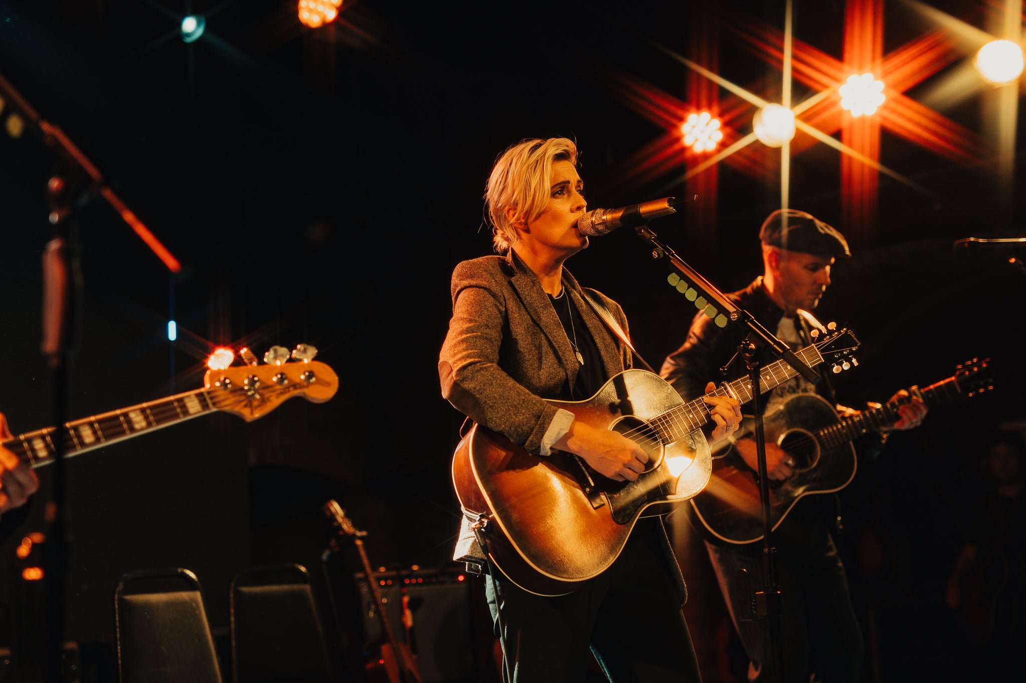 More than just her heart, Brandi Carlile wears her entire life on her sleeve. And her shoulder, chest and back. “They’re gas station patches,” she says, showing off the numerous badges sewn all over her otherwise smart blue jacket, each celebrating a town she’s passed through on her 30-year journey from the backwoods of Washington state to the peak of Mount Americana.