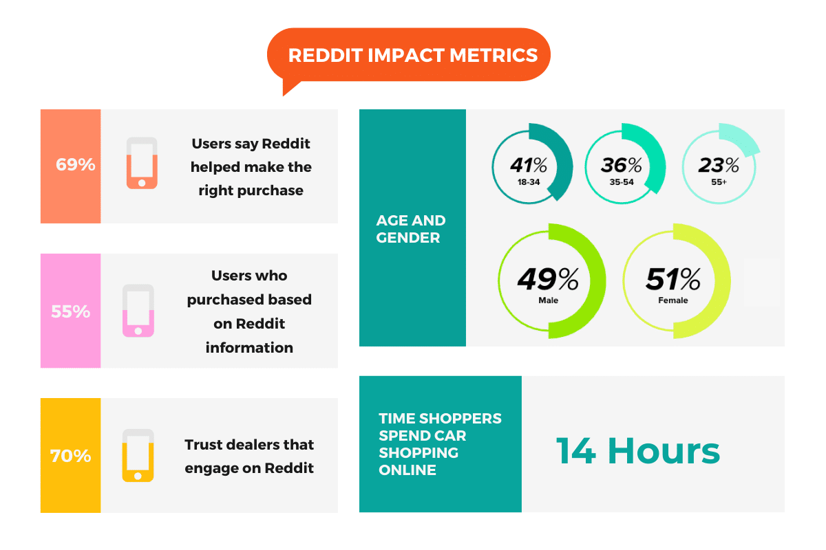 - Reddit users spend 3.7x more time researching vehicles than on traditional car shopping sites