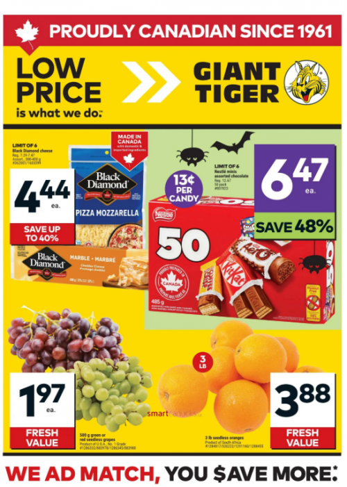 Giant Tiger Canada has some great new deals that start tomorrow, including low prices on produce, Halloween chocolate, and much more. Here are some of the deals that you will find in-store from October the 15th to the 21st at Giant Tiger: