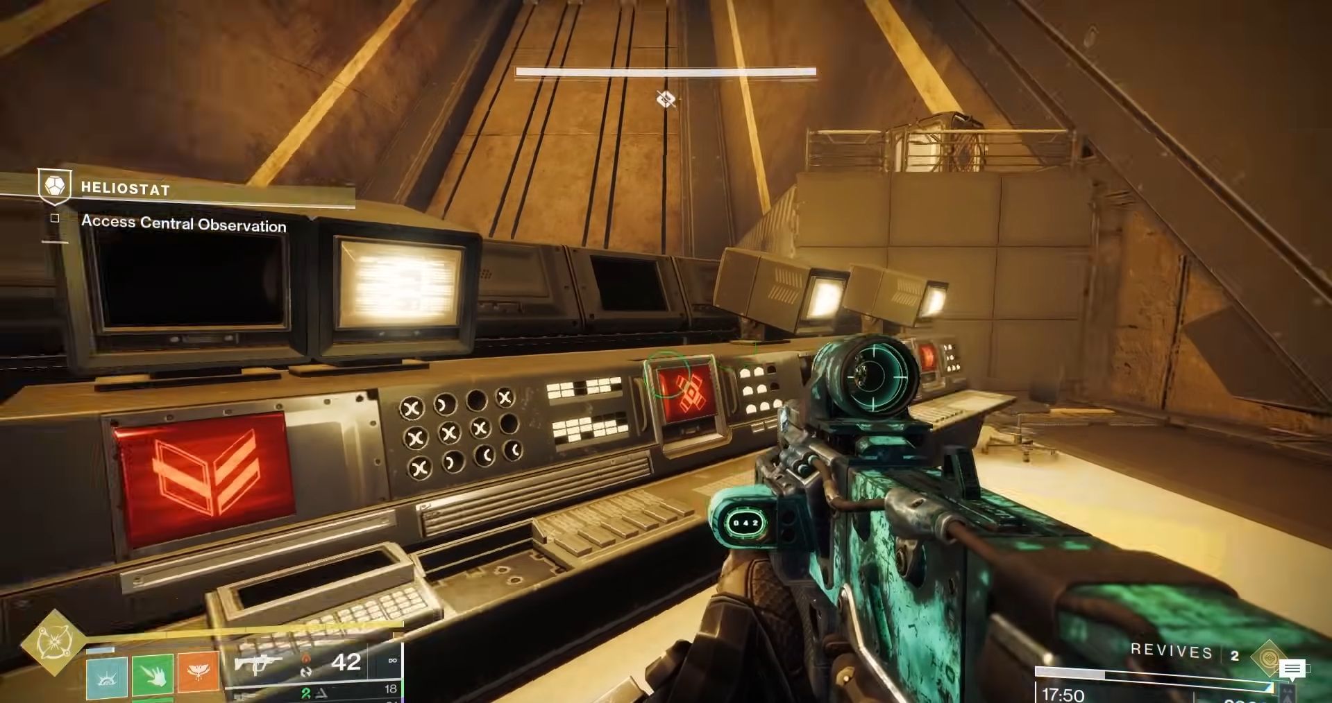 For the Relentless Strike Catalyst, go through the mission until you finish the first encounter, and to the point where you have to descend via an elevator. Keep shooting nodes to avoid the electric barriers, and descend fully. At the bottom, you will find two main terminals with red signs on the monitors.