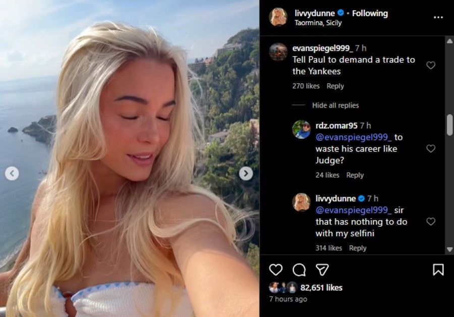Olivia Dunne recently took a swipe at a fan for suggesting a career move for her boyfriend Paul Skenes, on her highlights from the Italian trip. After her retirement and the conclusion of Skenes' second MLB season, the couple is currently enjoying their time together in a quick getaway.