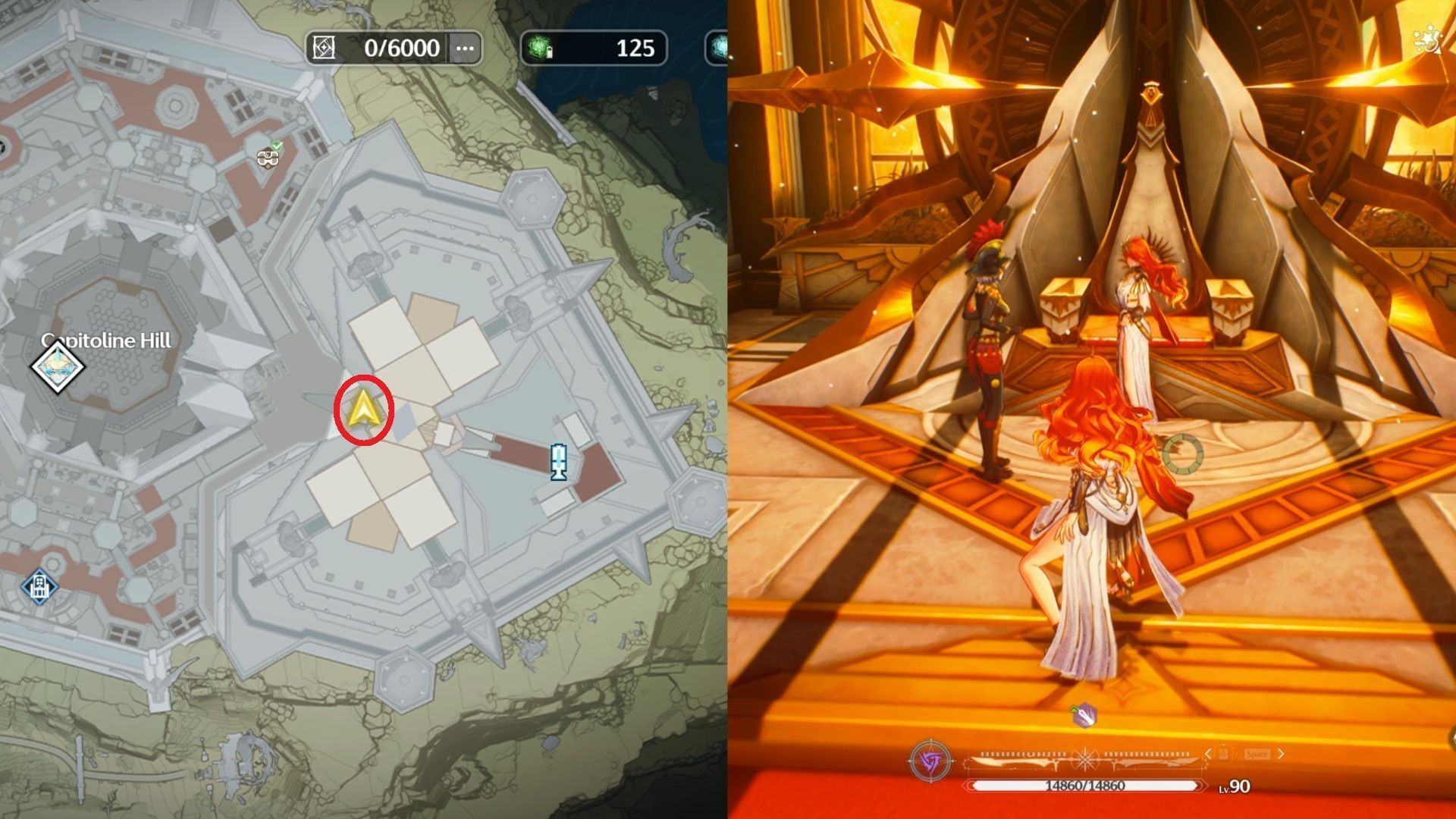 Use the Resonance Nexus in the Three Heroes' Crest and go east to find Iuno resting on the tree in the middle of the lake at around 20:00.