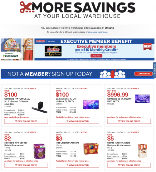 These Canada instant flyers are valid until October 26, 2025. Only Costco members in good standing may use these instant savings handouts and Costco discount will be automatically added when you purchase any of these items.