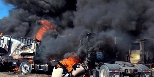 Two killed when small plane crashes into parked tractor-trailers in Texas