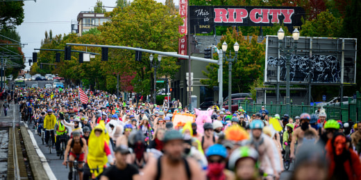Hundreds of cyclists strip down for anti-ICE protests in Portland